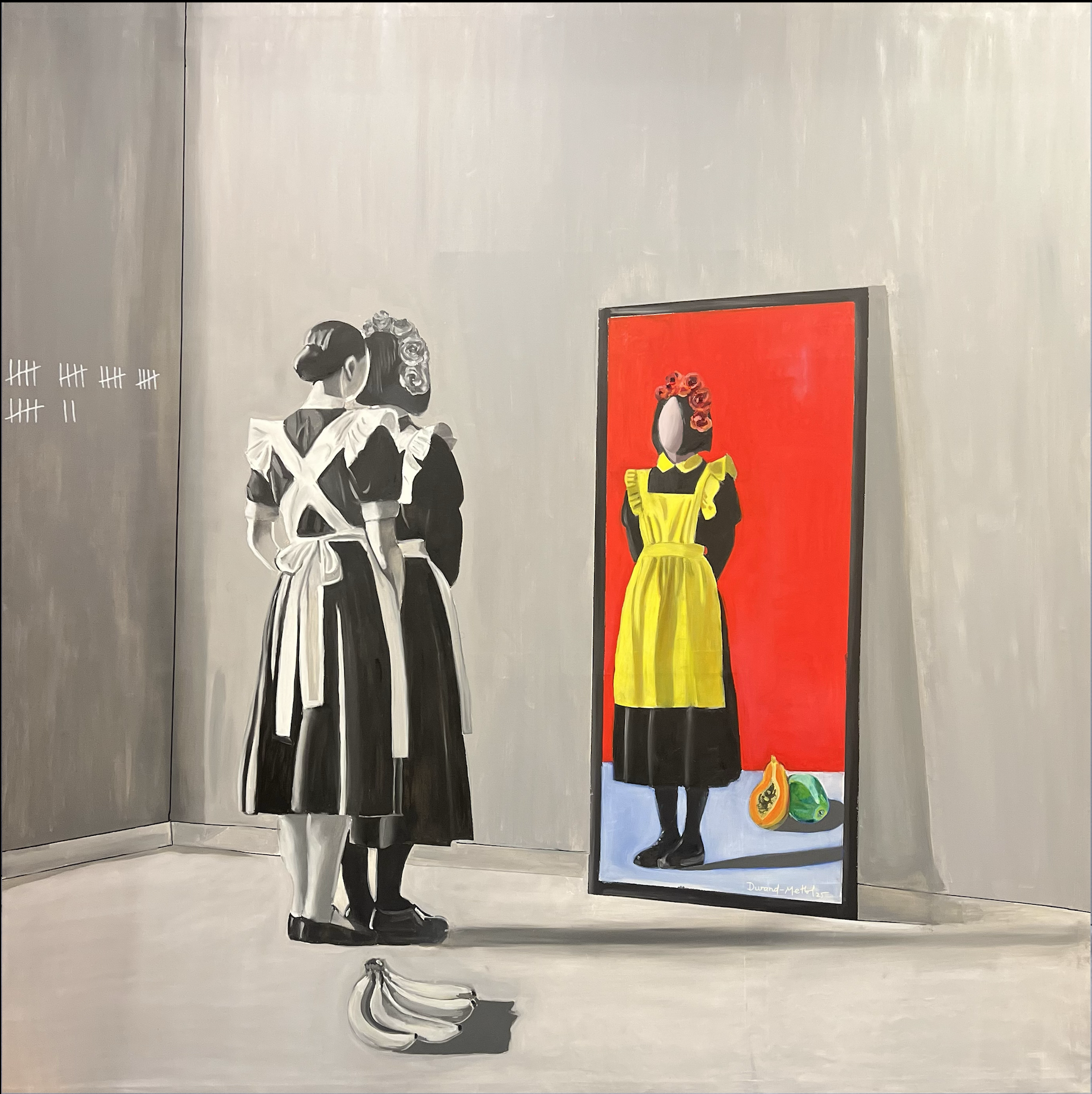 Pregnant (2024) 80X80inches. Mixed media, oil and print on canvas.